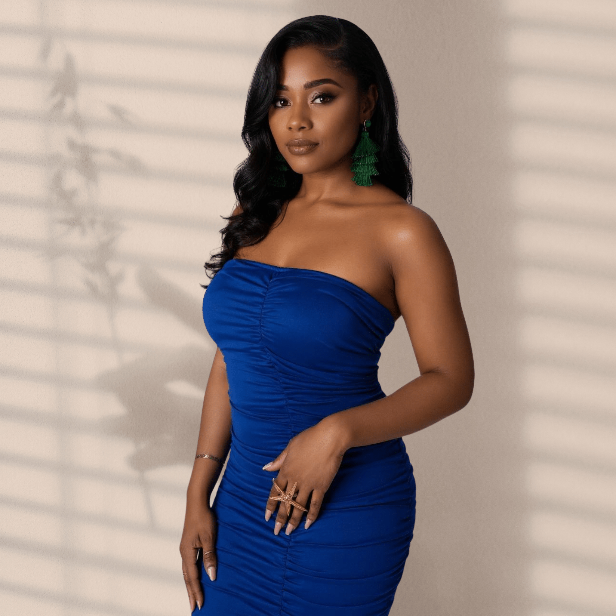 However you style it, this ruched midi dress is made to be worn with confidence.
