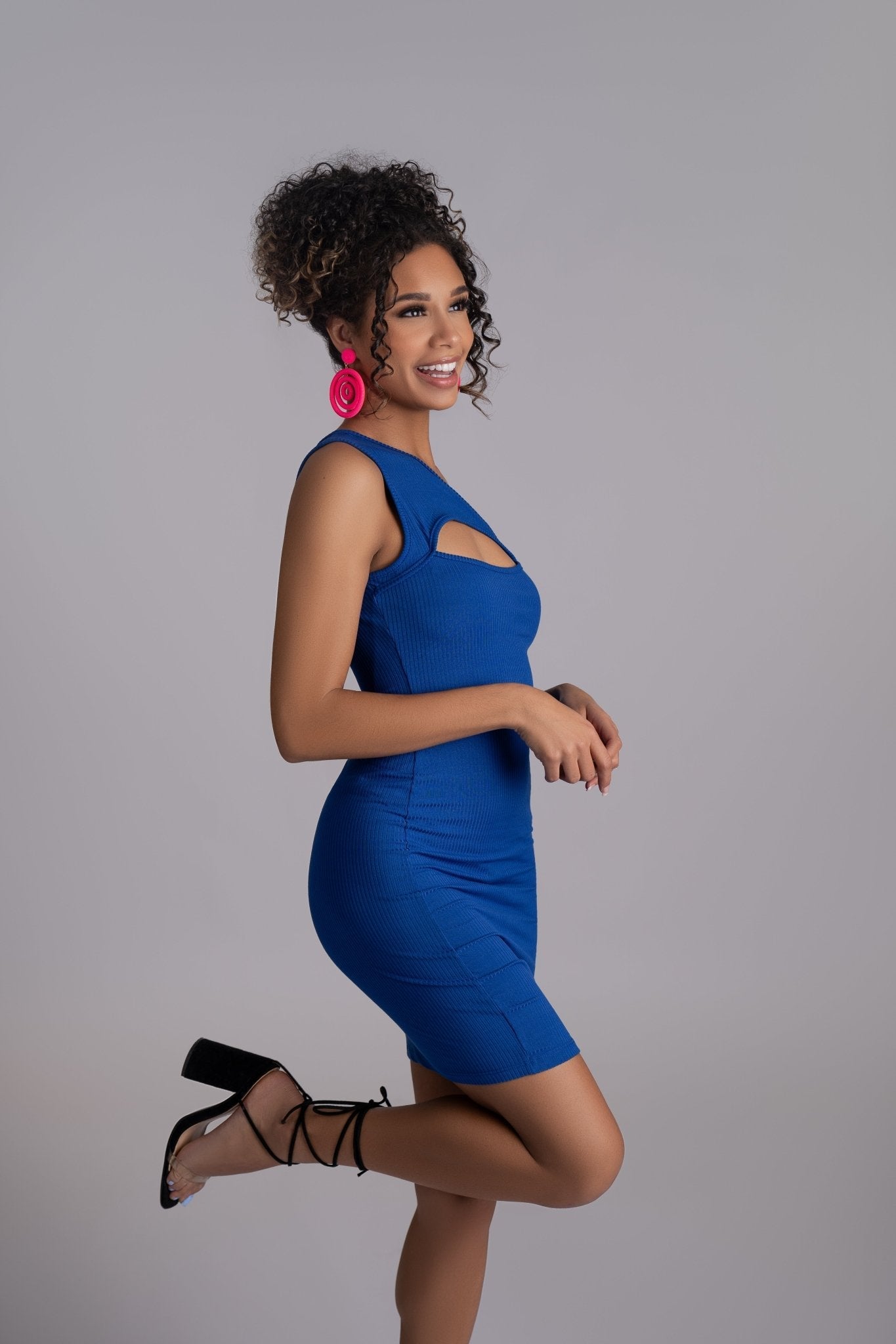 This ribbed, body-hugging mini features an asymmetric neckline with a sultry keyhole cutout that flatters from every angle. The one-shoulder silhouette gives it that instant "where did you get that?" effect, and the stretch fabric moves with you—so you can turn heads and twirl.