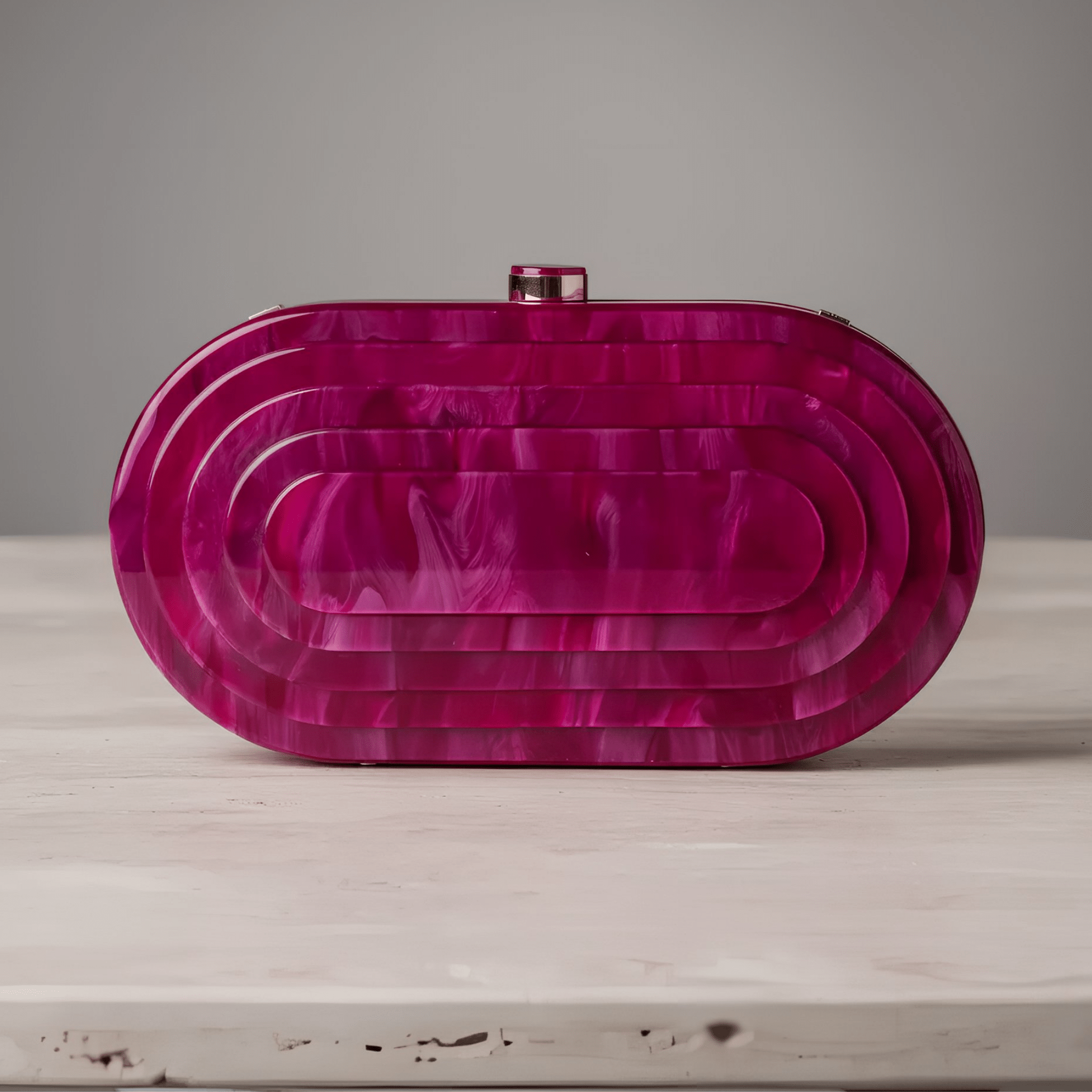 Meet The Anigma Fuchsia Clutch—a sculptural statement piece designed to punctuate the moment. Crafted in a high-gloss, translucent fuchsia finish, this clutch plays with light and shadow, revealing layered contours that feel modern, artful, and quietly bold.