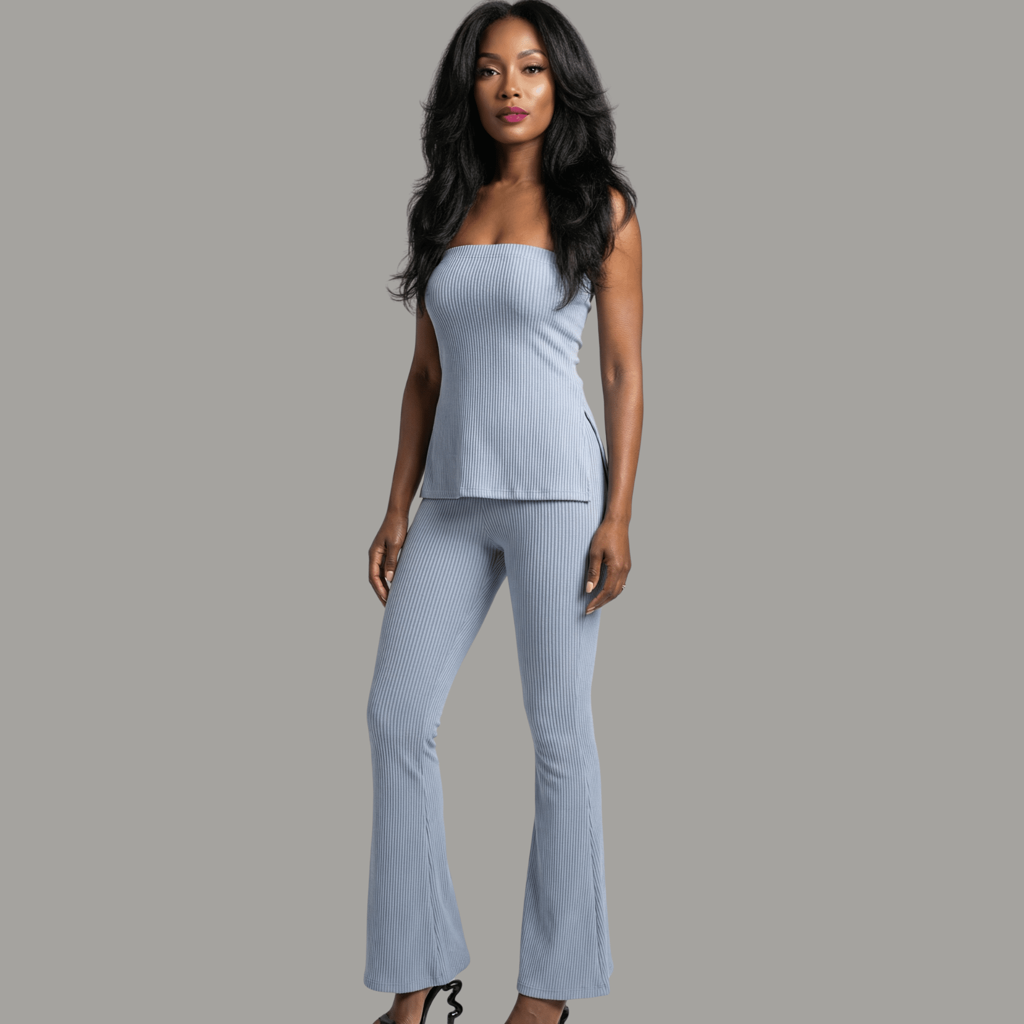 - Flare Pants: Channel effortless elegance with comfortable stretch knit pants, featuring a statement bell-bottom flair.