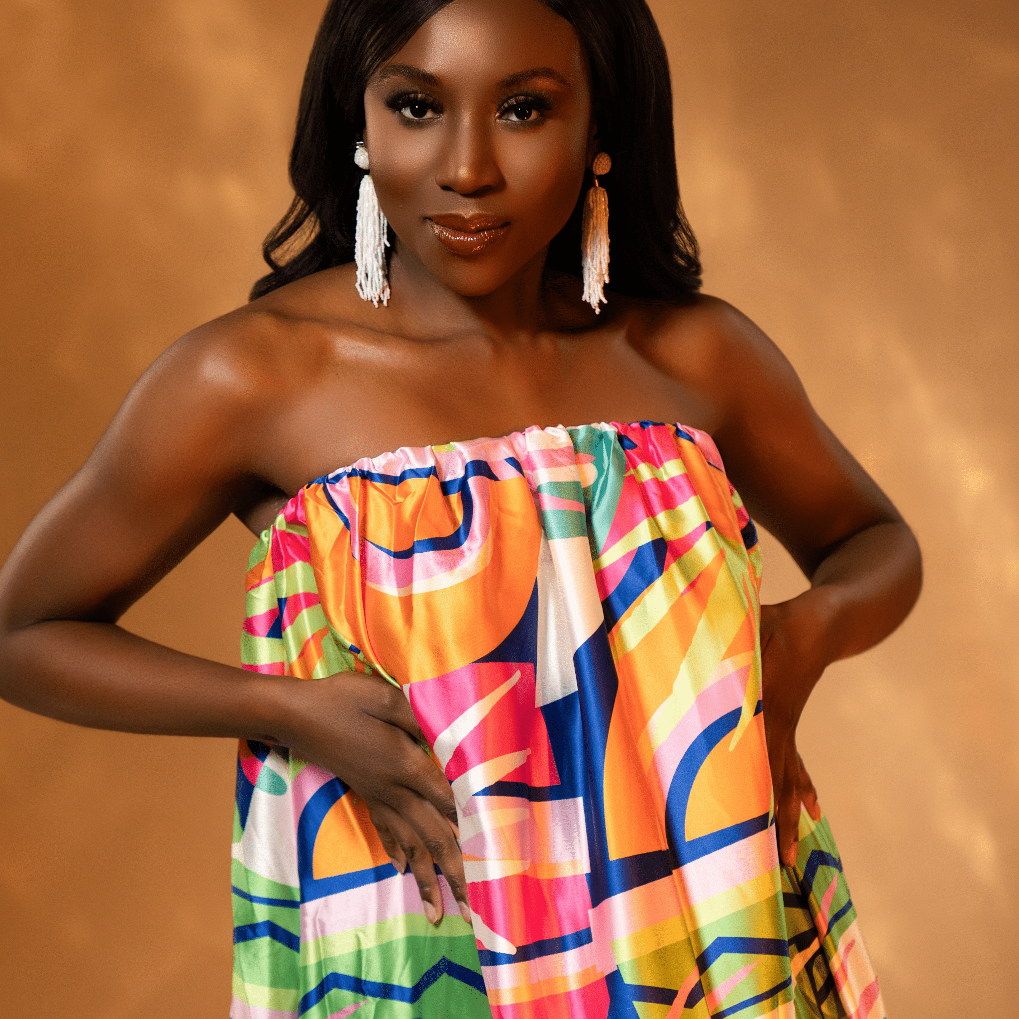 Make every moment feel like golden hour in the Sunset Mosaic Maxi Dress.