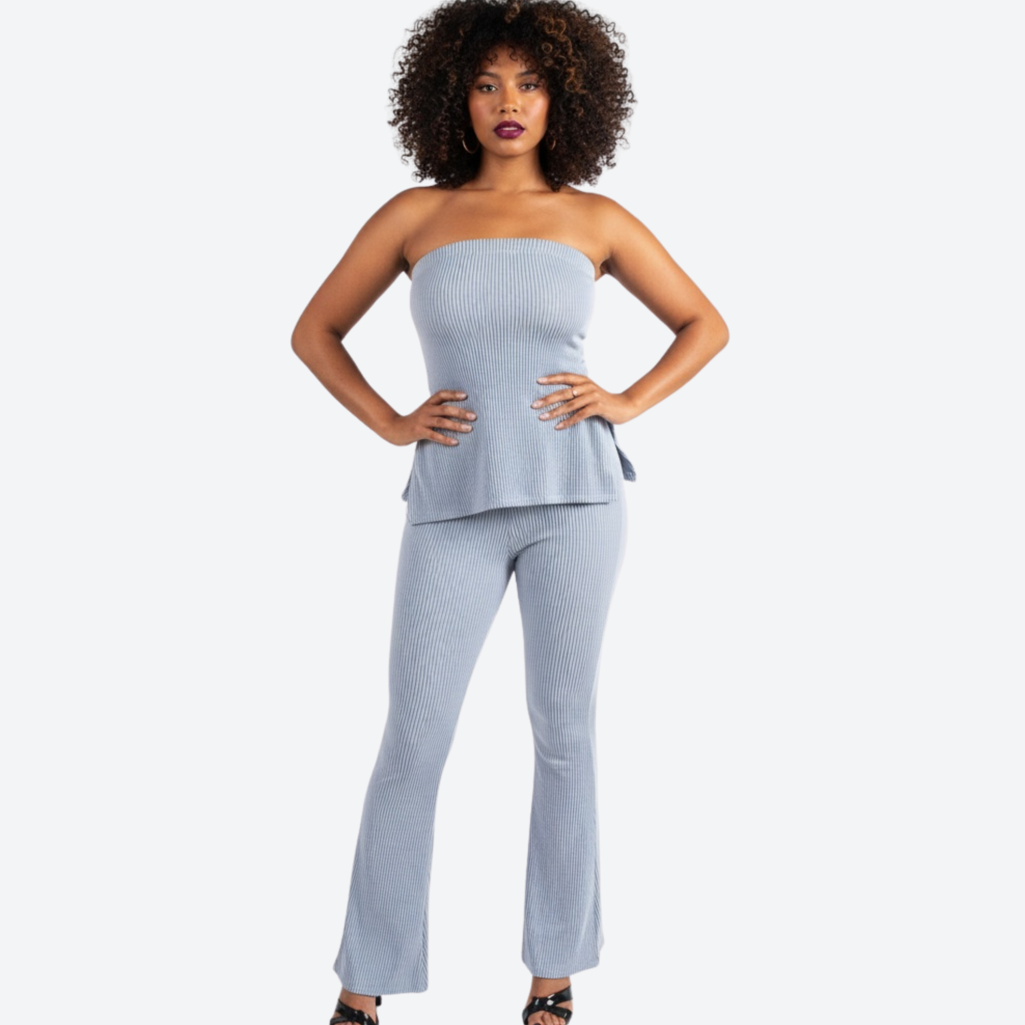 - Flare Pants: Channel effortless elegance with comfortable stretch knit pants, featuring a statement bell-bottom flair.