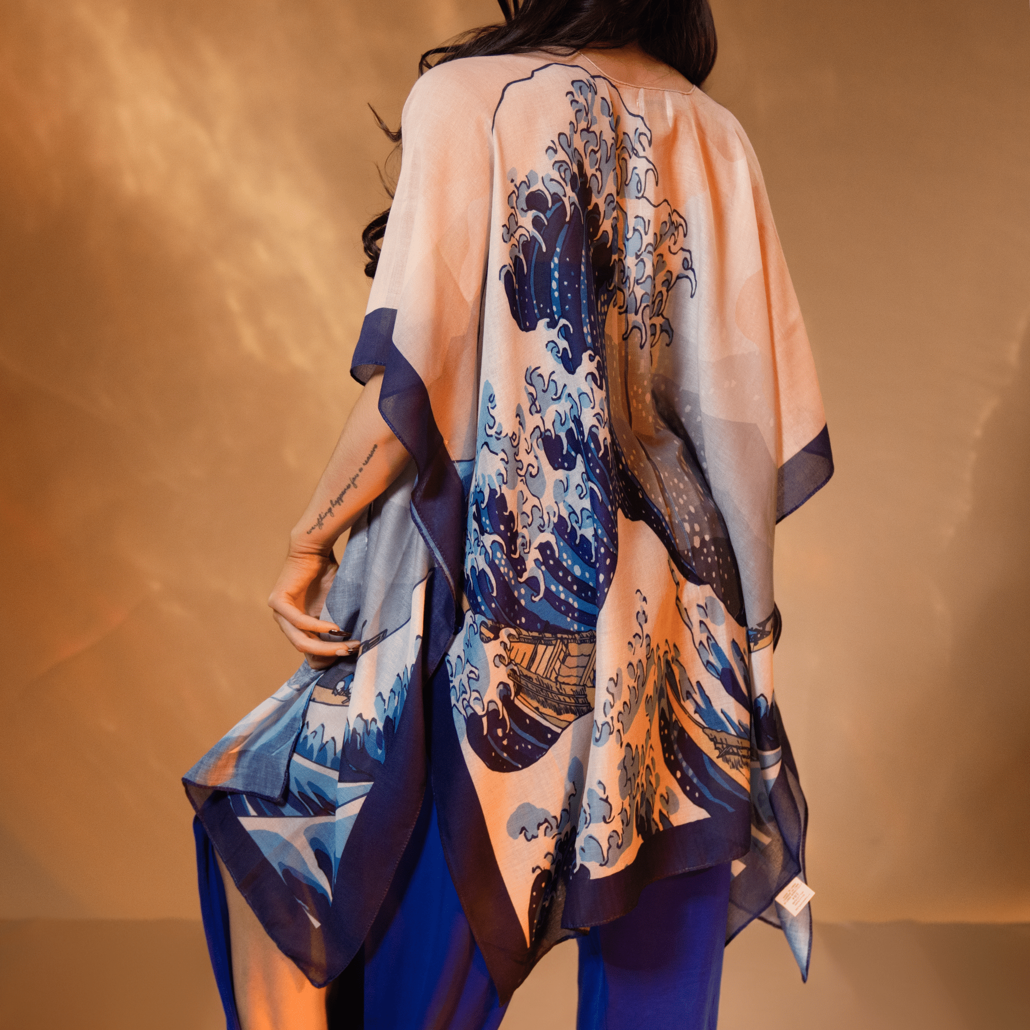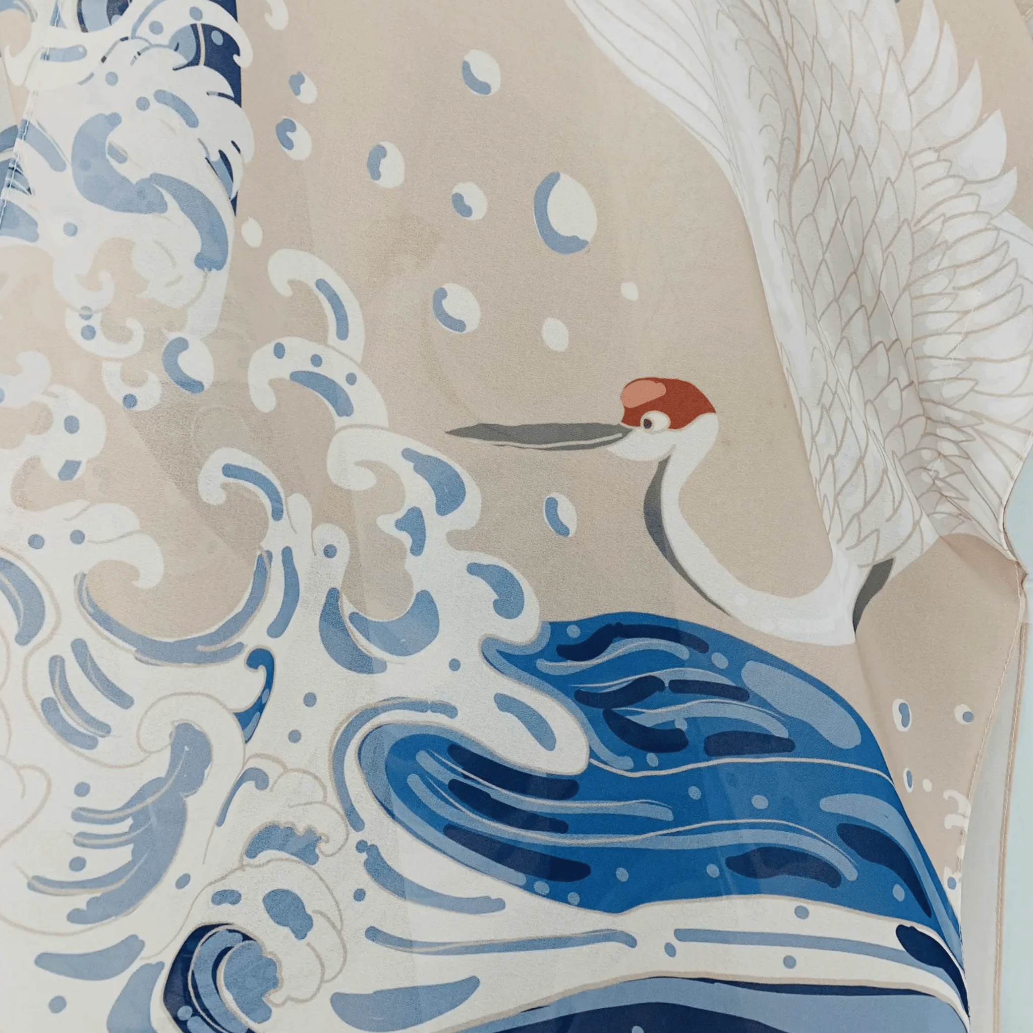 A symbol of elegance, power, and movement—our Crane Kimono merges art and fashion with a dramatic wave-and-crane print inspired by classic Japanese motifs. The lightweight, semi-sheer fabric glides effortlessly with every step, making it the perfect statement layer for beach days, gallery nights, or lounging in luxe.