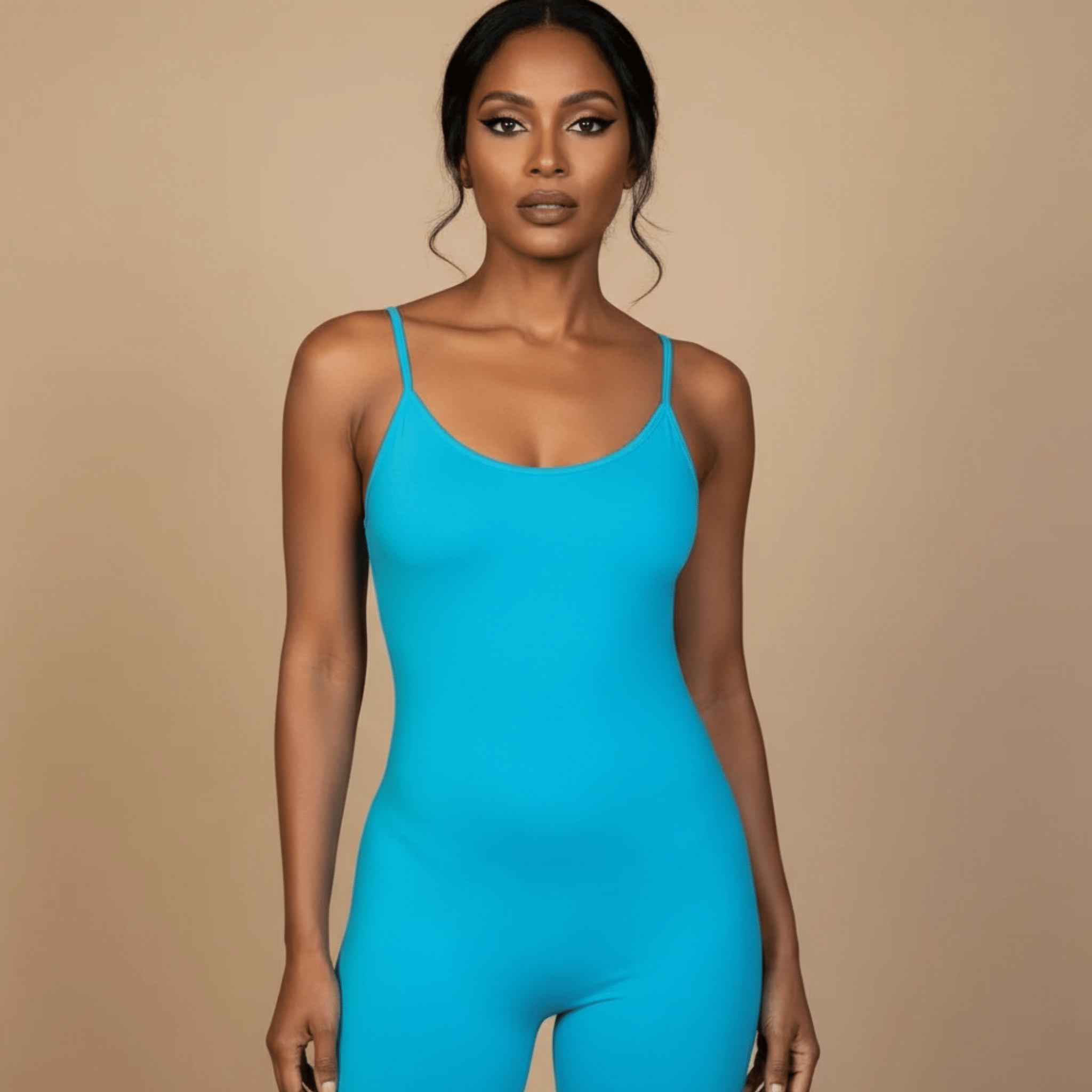 Meet your new everyday essential. The Dakota Teal Jumpsuit is crafted from an ultra-soft, lightweight stretch jersey that smooths, sculpts, and moves with you. Designed with a flattering bodycon fit, sleek cami straps, and a sultry open-back silhouette, this one-piece brings effortless style to every moment—whether you’re heading to brunch, a yoga class, errands, or a travel day.