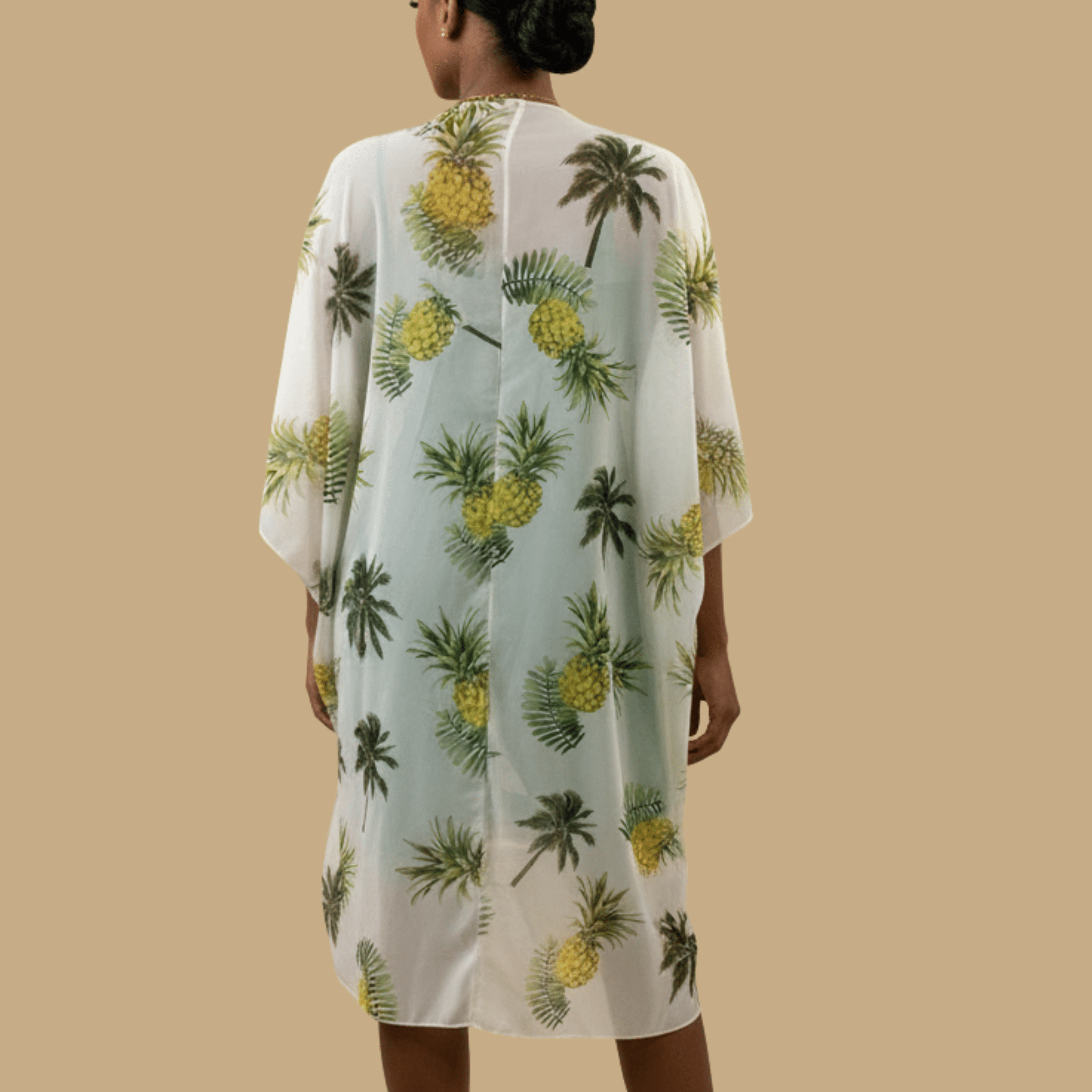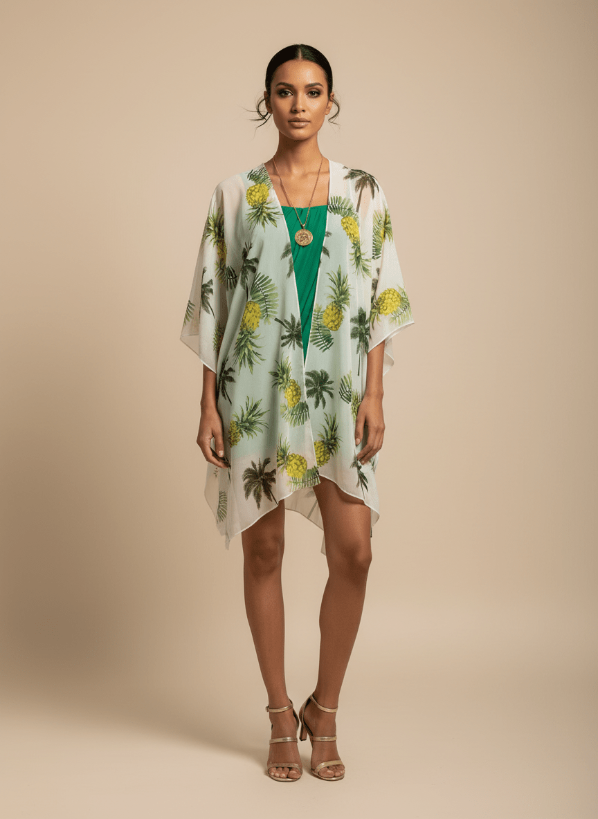 Bring a little sunshine wherever you go with The Pineapple Kimono, your new effortless layer for beach days, resort nights, island getaways, and everyday glam. Designed with a breezy, flowy silhouette and a vibrant pineapple-and-palm print, this tropical kimono instantly transports you into vacation mode—even if you’re just running errands or heading to brunch.
